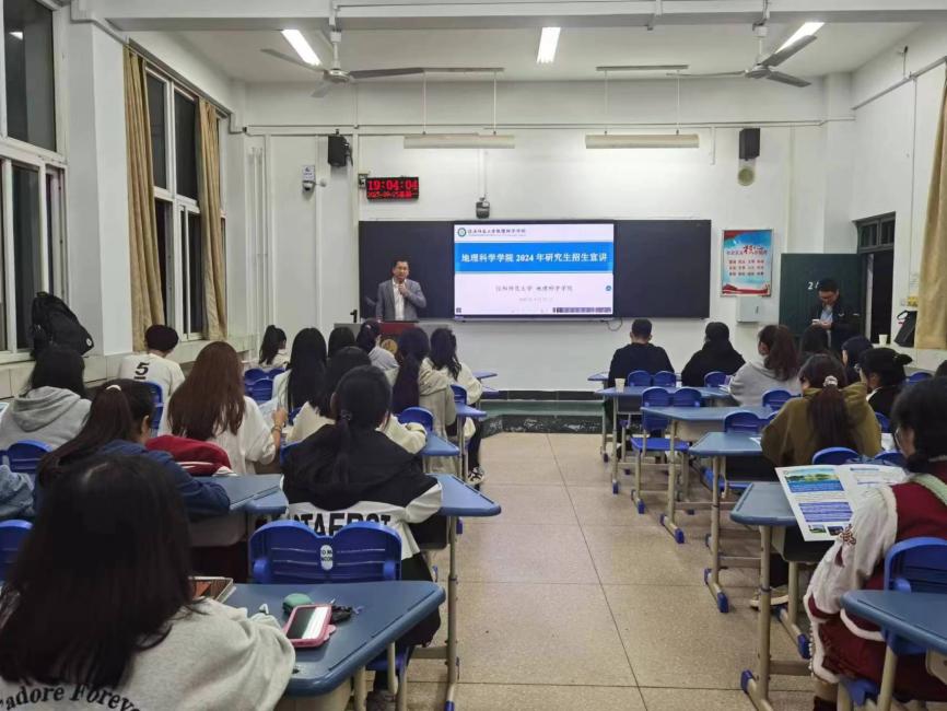 为提高白菜官网研究生生源质量,提升地理学科的影响力,9月25日我院研究生工作秘书闫军辉副教授、魏巍副教授和陈时雨博士一行前往河南城建学院进行2024年硕士研究生招生宣传,河南城建学院2020级和2021级近60名学生参加了宣传会。