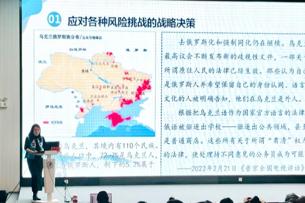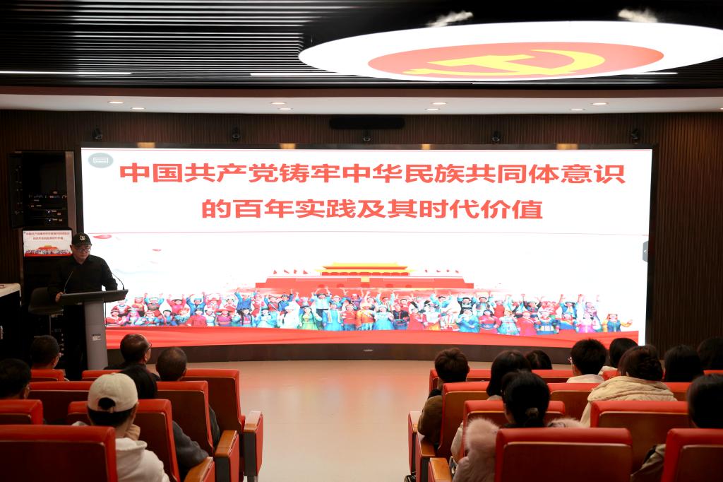 郭斌老师以《中国共产党铸牢中华民族共同体意识的百年实践及时代价值》为题,从“铸牢中华民族共同体意识的科学内涵”“中国共产党铸牢中华民族共同体意识的百年实践”“中国共产党铸牢中华民族共同体意识的时代价值”三个方面阐述了铸牢中华民族共同体意识的理论内涵和实践要求。