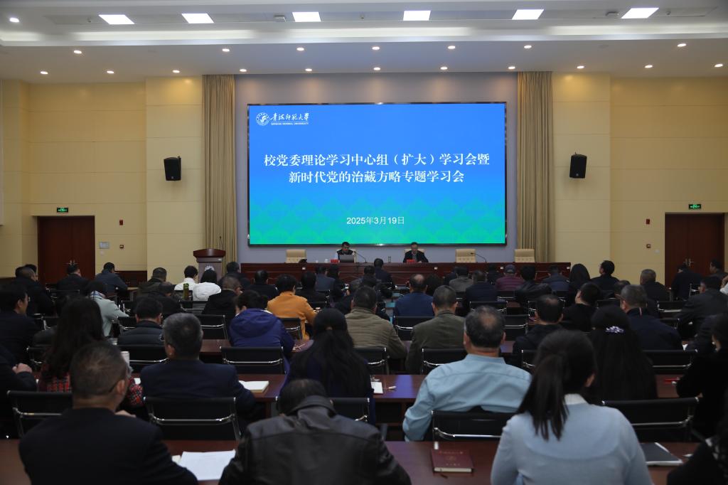 3月19日下午,校党委理论学习中心组举行专题学习会,深入学习贯彻党的二十届三中全会精神,学习领会习近平总书记关于宗教工作的重要论述和新时代党的治藏方略。校党委副书记许存宁主持会议。