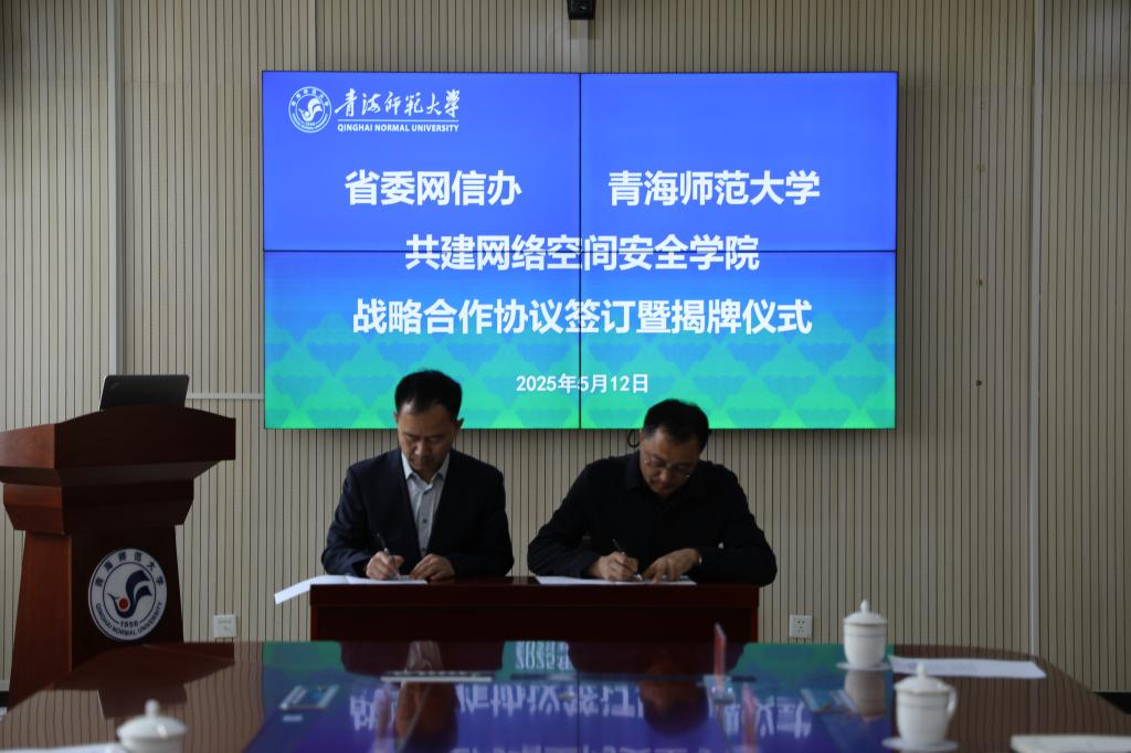 揭牌仪式上,牟昱苍代表学校与省委网信办签署《省委网信办、ac米兰官方中文网站共建网络空间安全学院战略合作协议》。