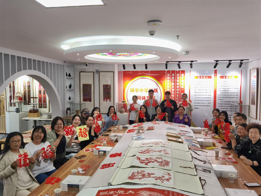 课堂上,师生们以剪刀为笔、红纸为卷,将中华文化与团结精神精心雕琢于方寸之间,以剪纸艺术为桥梁,不仅让各族师生体验到了剪纸艺术的乐趣,更是将中华民族优秀传统文化的种子播撒在心中,增进了师生对中华文化的认同感和自豪感,让优秀传统文化成为铸牢中华民族共同体意识教育的鲜活教材。