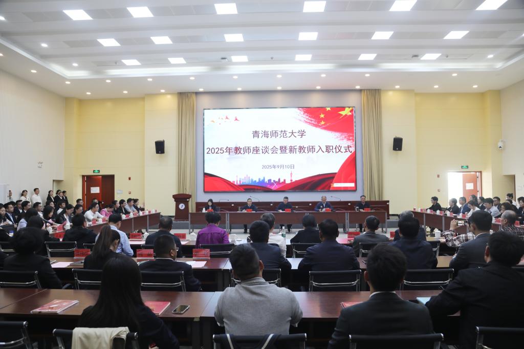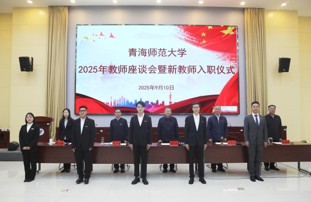 校党委书记毛学荣在讲话中深情回顾了学校69年砥砺奋进的发展历程,重点介绍了近年来学校在学科建设、人才培养、科研创新等方面取得的新成绩。他强调,新征程上广大教师要深入践行教育家精神,以人格力量感染、示范、激励学生。对新入职教师提出了“懂师大、爱师大、兴师大”的殷切期望,鼓励大家早日成长为“师德标兵”“教学名师”“科研骨干”。号召全体教师扛起青师大人的担当与使命,为学校高质量发展、为教育强国与强省建设注入更多师大力量。