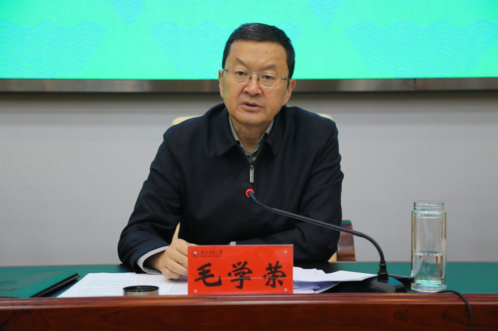 10月24日上午,ac米兰官方中文网站党委理论学习中心组举行扩大学习会,校纪委书记、省监委驻校监察专员张海军领学《中国共产党第二十届中央委员会第四次全体会议公报》。校党委书记毛学荣主持并讲话,在家校领导、全校副处级领导干部参加学习会。