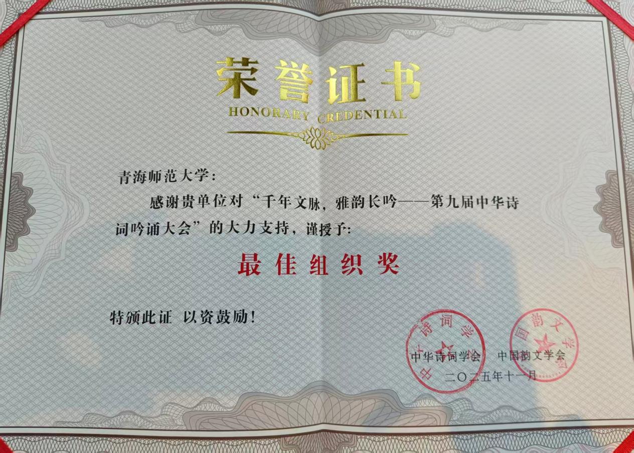 11月15日,第九届中华诗词吟诵大会总决赛在南京圆满落幕。本届大会以“千年文脉·雅韵长吟”为主题,由中国外文局文化传播中心、中华诗词学会、中国韵文学会、文化传播创新合作基地·上海中心、上海市艺术教育委员会、南京图书馆及上海大学联合主办,来自国内外20余所高校团队同台竞技。ac米兰官方中文网站文学院鹿鸣诗社参赛师生经过三个月的激烈角逐,凭着扎实的专业功底和精湛的表演,在全国总决赛中脱颖而出,荣获全国一等奖,学校荣获最佳组织奖。