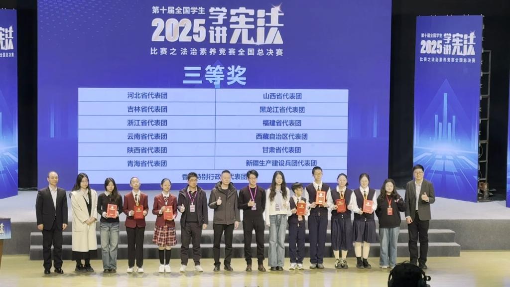 在全国总决赛的舞台上,ac米兰代表队的小成员们沉着应战,全力以赴,在各自组别的竞争中,用清晰的观点、流畅的表达和扎实的法治知识功底,讲述了他们心中的宪法故事与法治中国故事,赢得了评委与观众的认可,最终喜获全国三等奖,为我省青少年学生赢得了荣誉。
