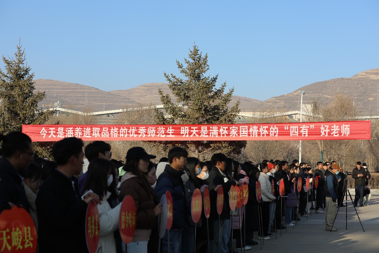 出征仪式在庄严的国歌声中拉开序幕。冶成福代表学校致辞,他向大力支持顶岗支教实习工作的单位表示感谢,对参加顶岗支教工作的师生提出要求和希望:一是向基层学习,向实践学习,在实习岗位上践行教育家精神,追求“有理想信念、有道德情操、有扎实知识、有仁爱之心”好老师目标,培养扎根高原的教育情怀。二是希望同学们守正创新,增强育人本领,备好每一节课,解好每一道题,讲好每一堂课。三是希望同学们遵守规范,保证平安,把握好既是学生又是教师的双重身份,坚守师德,遵守纪律,规范言行。四是不忘初心,牢记使命,和全体师大人一起,致力于教育教学改革,为实现农牧区基础教育质量提升贡献智慧和力量。