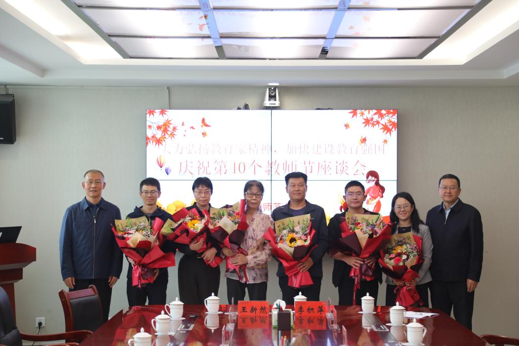 座谈结束后,毛学荣、涂清云代表学校为参会教师敬送鲜花,表达了美好的节日祝福。