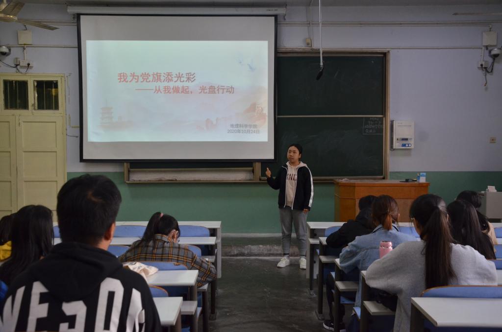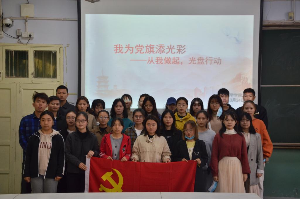 10月24日,600cc全讯白菜自助注册“我为党旗添光彩——从我做起 光盘行动”党校活动于教二梯二顺利举行,第34期党校学员参加了此次活动。活动由组长史超格主持。