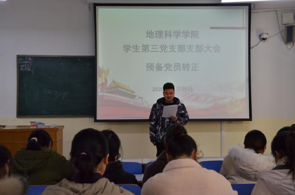 11月29日,600cc全讯白菜自助注册学生第三党支部于教三04召开2020年下半年预备党员转正大会,学生第三党支部书记杨辉、学生第三支部全体党员参加本次会议。会议由张世可主持。