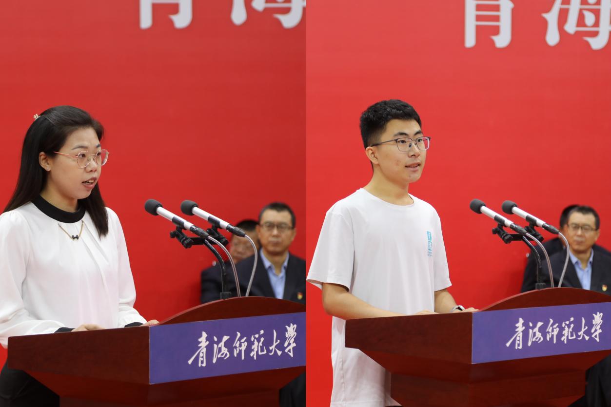 马克思主义学院2022级硕士研究生崔慧博、生命科学学院2024级新生田官鑫分别代表在校生和新生发言。崔慧博鼓励学弟学妹们以砥砺为衣,以前行为裳,立志做有理想、敢担当、能吃苦、肯奋斗的新青年。田官鑫代表新生表示,要站在新的起点,争做“弘扬教育家精神”“懂青海,爱青海,兴青海”“勤学修德,为人师表”的践行者。
