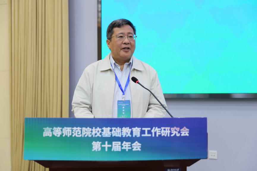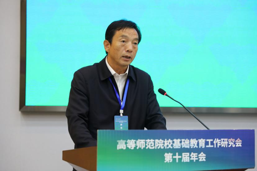 王守军在会上致辞,他指出高师院校肩负着联结“基础教育基点”和“高等教育龙头”的天然使命,是国家开展教育教学研究、师范教育和教师教育的主阵地,是巩固拓展脱贫成果、促进乡村振兴、促进教育优质均衡发展的动力源。未来,高师基础教育工作研究会将坚定不移践行扩优提质的帮扶行动,以教育资源和专业优势进一步开展基础教育办学和帮扶,加快发展新质生产力,推动教育领域实现创新变革,书写好以教育强国建设支撑引领中国式现代化的新篇章。