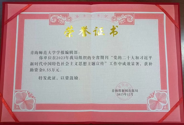 党的二十大召开以来,期刊开设了“研究阐释党的二十大精神”专栏,2022年10月以来,至今在社科版已经开设了8期专栏,刊发或录用了16篇关于“研究阐释党的二十大精神”的理论佳作。因专栏的重要性和特殊性,在专栏建设中采取了专栏主持人制度,约请相关专家担任栏目主持人,约请名家优质稿件,组织刊发了北京师范大学、兰州大学、西北大学、中国社会科学院大学等高校名家佳作。目前,“研究阐释党的二十大精神”专栏持续邀请主持人约稿组稿中。2023年,学报编辑部荣获全省期刊“党的二十大和习近平新时代中国特色社会主义思想主题宣传”先进单位称号,并获得补助资金。