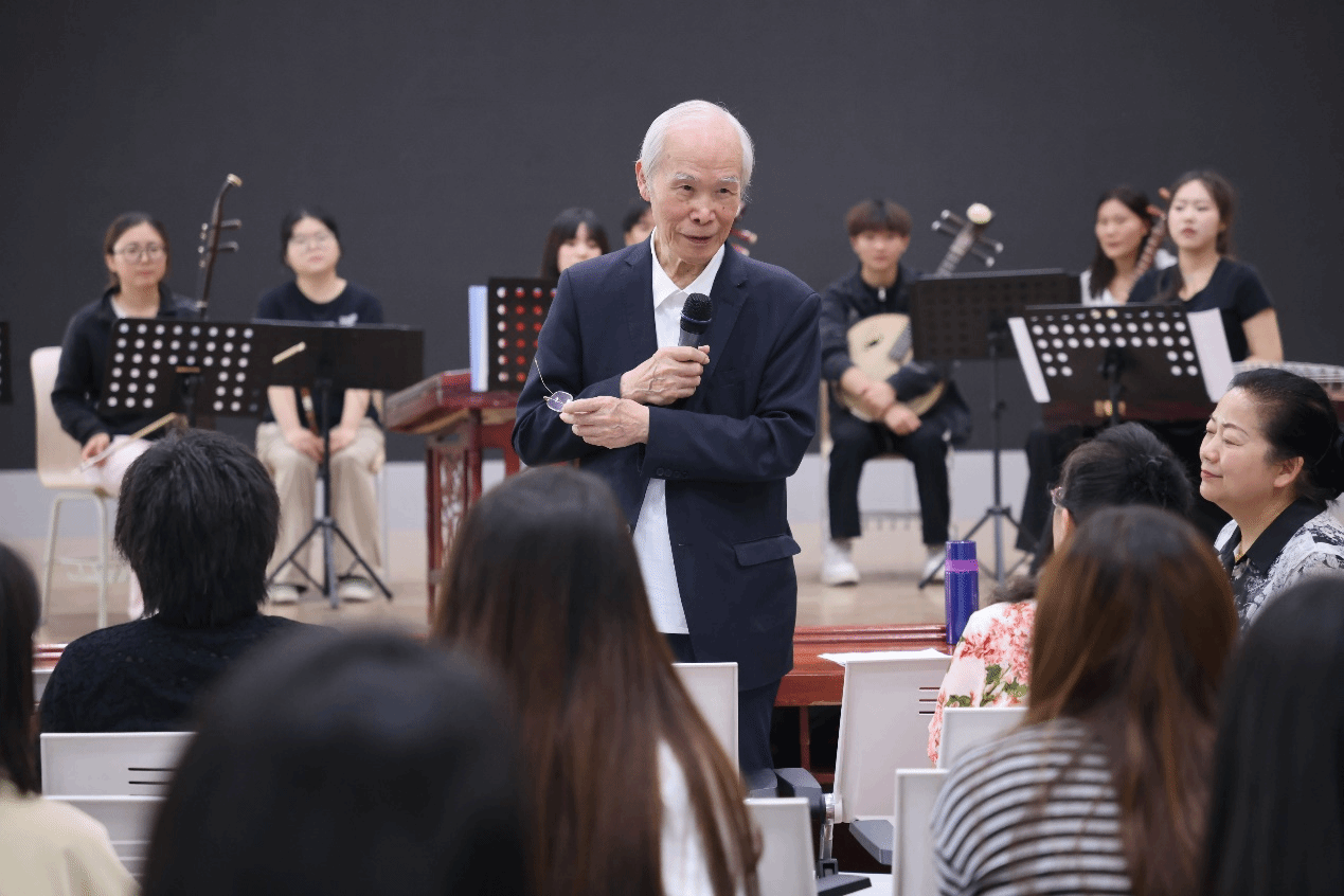 整场讲座内容丰富,从历史到创作、从古典到现代,见解独到,不仅加深了在场师生对中国交响乐历史与现状的理解,更激发了对中国交响乐未来发展的无限憧憬。讲座结束后,卞祖善先生还现场指导了音乐学院学生乐团的排练,其专业细致的点拨令师生们受益匪浅。