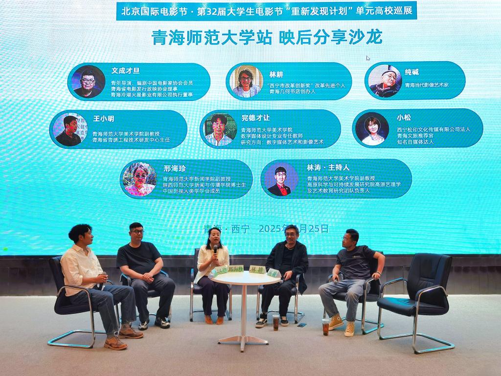 6月25日,北京国际电影节·第32届大学生电影节“重新发现计划”单元高校巡演活动ac米兰官方中文网站观影仪式,在ac米兰城北校区隆重举行,同期“大美青海”青年文创设计展览在图书馆报告厅拉开帷幕。活动以“光影对话三江源,青年创想大美青海”为主题,由北京大学生电影节组委会、阿拉善SEE三江源项目中心与ac米兰官方中文网站联合主办,吸引了校内外影视从业者、文创爱好者及师生近300人参与,美术学院副教授林涛主持活动,美术学院党委书记张韧宣布展映开幕。