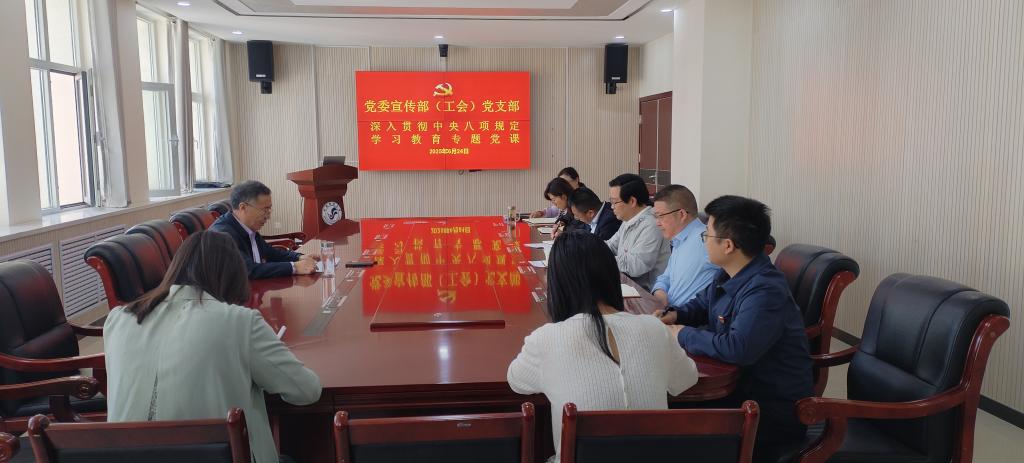 许存宁从深刻认识中央八项规定精神的重大意义、准确把握作风建设的内涵和要求、以作风建设新成效推动学校事业高质量发展三个方面出发,结合学校工作实际,运用了大量数据和生动详实的案例,深刻阐释了中央八项规定精神的深刻内涵与时代意义。他强调,全体党员要进一步深化思想认识、增强行动自觉,推动中央八项规定精神落地生根,把作风硬要求变成硬措施,确保学有质量、查有力度、改有成效,切实强化服务意识,提升管理效能,真正以作风建设新成效开创学校宣传思想文化和工会工作高质量发展新局面。