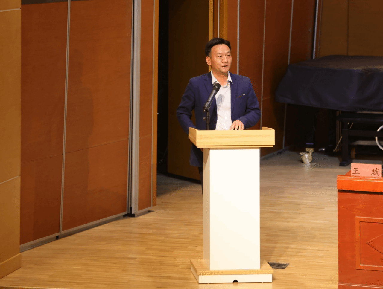 见面会在庄严的国歌声中拉开序幕,音乐学院院长王金锐代表全院师生向新同学表示热烈欢迎和衷心祝贺,并介绍了音乐学院高原艺术教育历程,对同学们提出三点期望:心怀家国,做有抱负的追梦人;持之以恒,做有本领的奋斗者;热爱生活,做有温度的音乐人。