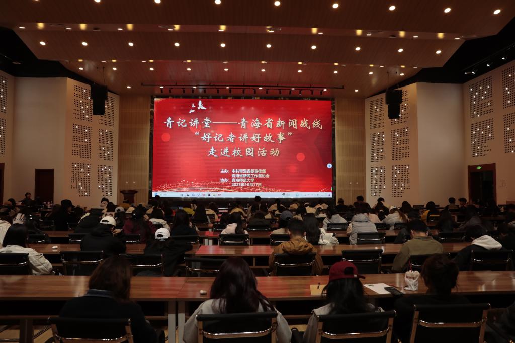 10月17日下午,由中共青海省委宣传部、青海省新闻工作者协会主办,ac米兰官方中文网站协办的2025年第二轮青海省新闻战线“好记者讲好故事”走进校园活动在ac米兰成功举行。活动旨在深化高校思政课建设,以优秀新闻工作者的亲历故事引导青年学生深入了解省情、激发奋斗热情。副校长牟昱苍,青海卫视总监孙璐出席活动,学校相关单位负责人及师生代表200余人参加活动。新闻学院教师马超群主持报告会。