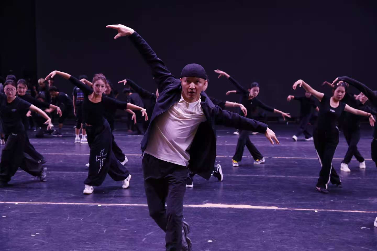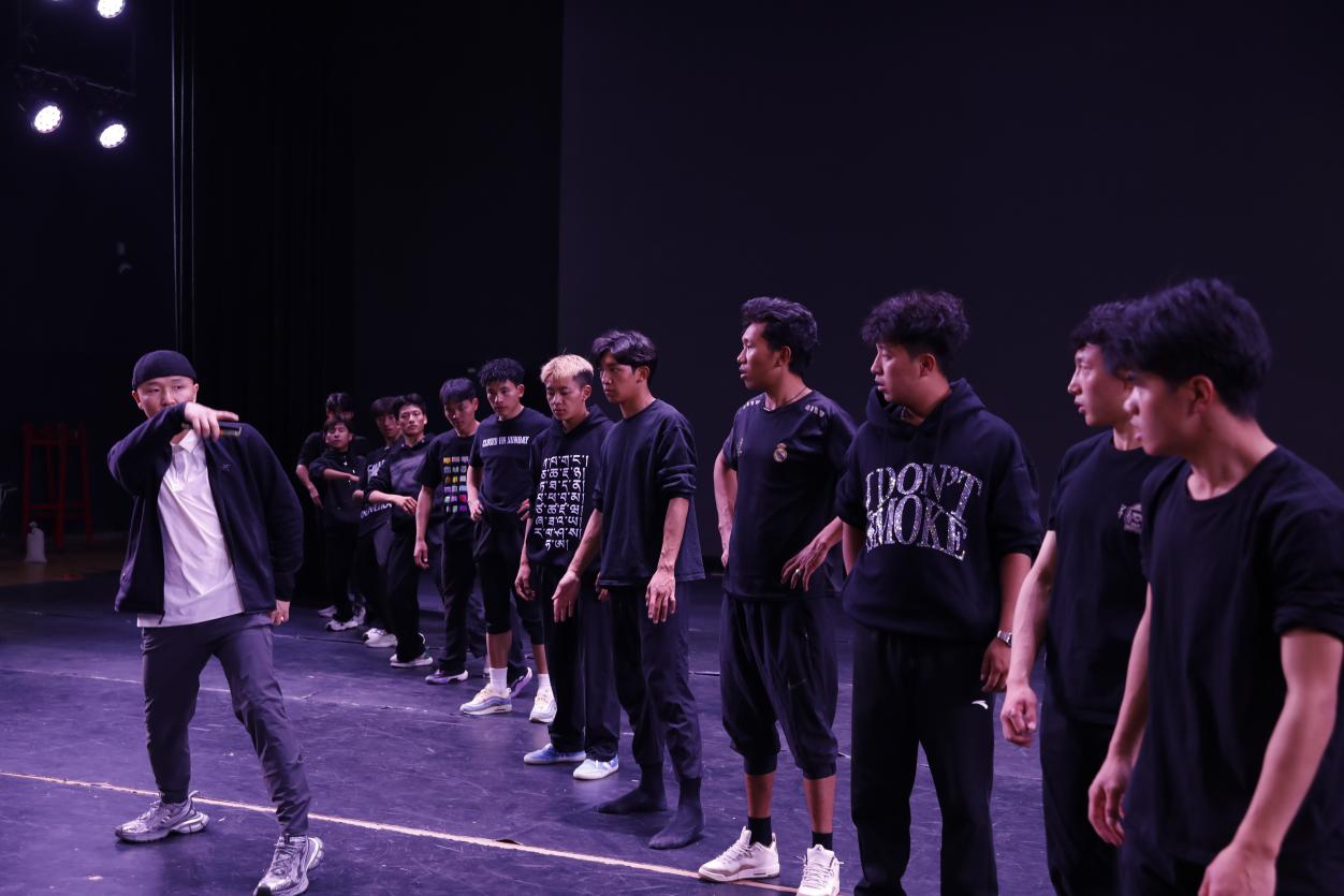 随后的“舞蹈叙事技巧”分享课上,巴特尔以自己编排的《黄河远上》《胡杨赞》两部代表作为例,拆解舞蹈承载故事与文化的方法。他解析《黄河远上》如何通过“浪涛式”队形、激昂的肢体语言,还原黄河壮阔景象并传递华夏文明底蕴;讲解《胡杨赞》如何用刚柔并济的舞姿、西北民族元素,歌颂生命韧性与家国情怀。他提出“用具象动作映射故事场景”“借民族符号强化文化共鸣”等编排技巧,让学生清晰理解“每一个转身、每一次托举都需服务于故事表达”。