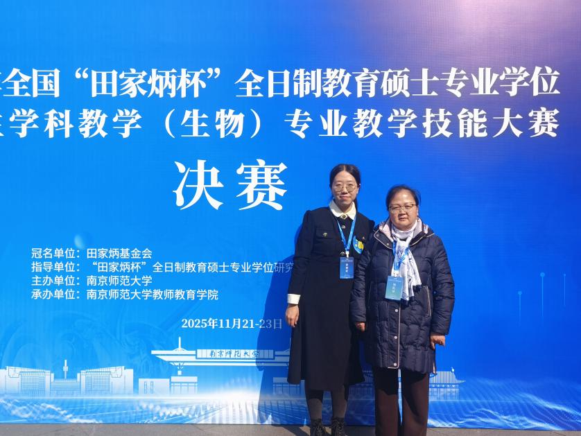 11月21日至23日,全国“田家炳杯”全日制教育硕士专业学位研究生教学技能大赛在南京师范大学举行。生命科学学院学科教学(生物)专业硕士研究生张乐积极筹备、沉稳应战,凭借扎实的专业学识、精湛的教学技艺、创新的教学构思以及良好的综合素养,荣获三等奖。