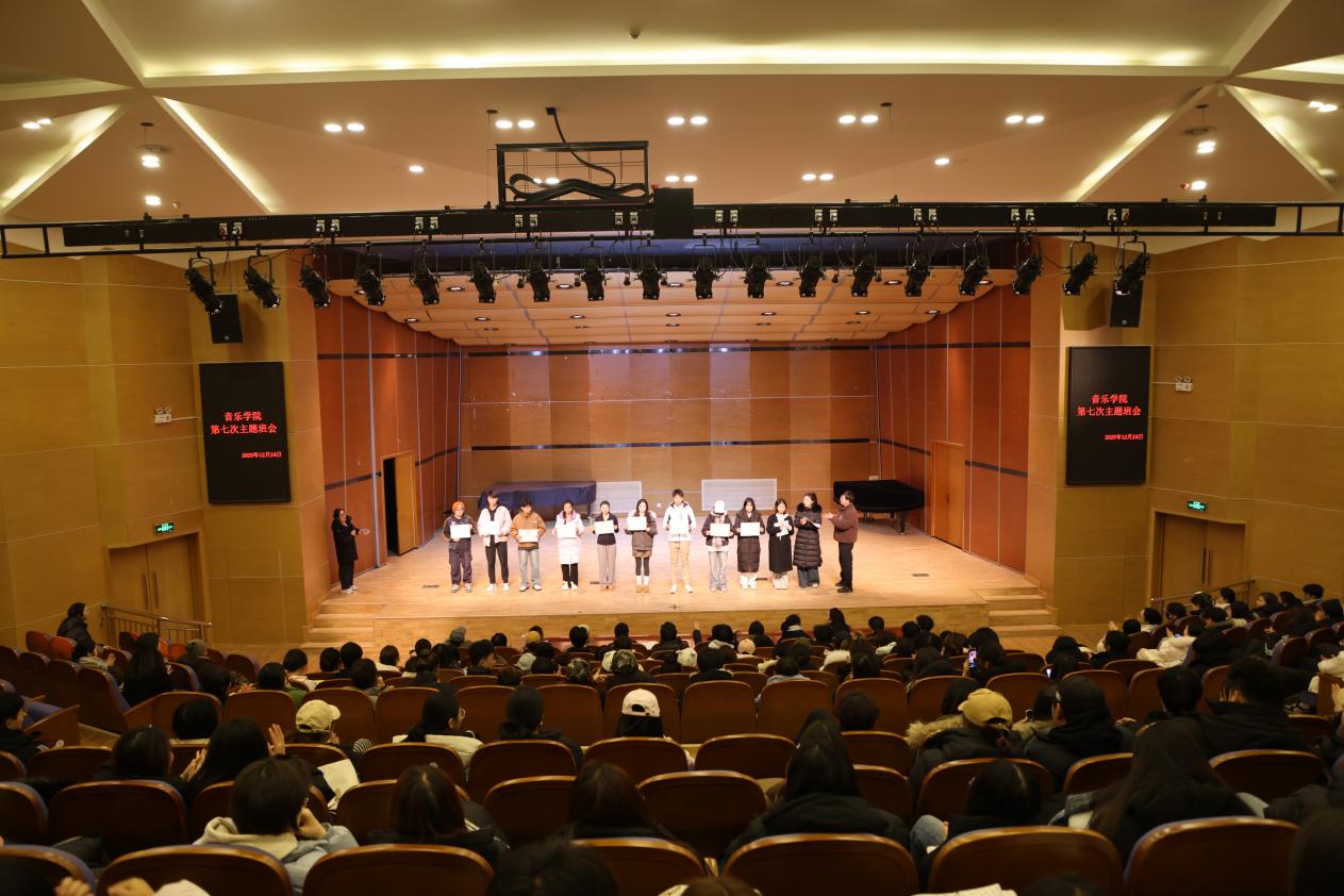 为表彰先进典型、规范学生行为、强化育人实效,12月24日晚,音乐学院在音乐厅召开第七次主题班会,学院负责人、辅导员、班主任及全体学生参会。