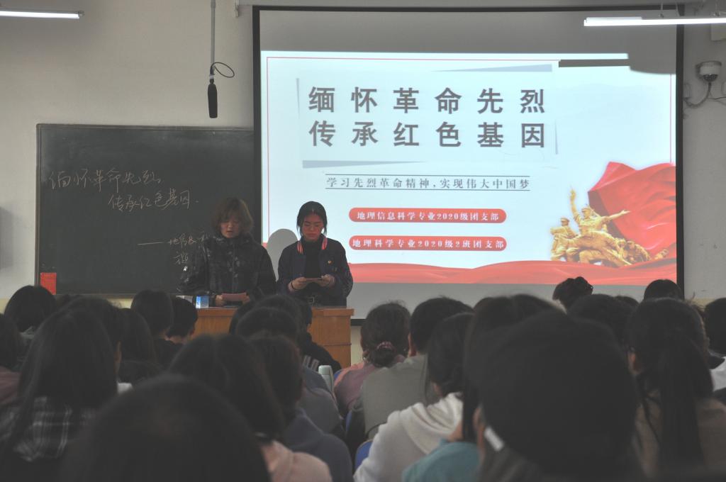 4月9日, 由600cc全讯白菜自助注册地理信息科学专业2020级团支部主办、地理科学专业2020级2班团支部协办的“缅怀革命先烈,传承红色基因”主题团日活动于教三07顺利举行。活动由2020级地理信息科学班团支书高子涵和2020级地理科学二班团支书封新月共同主持,2020级地理科学二班和2020级地理信息科学班全体同学参加此次团日活动。
