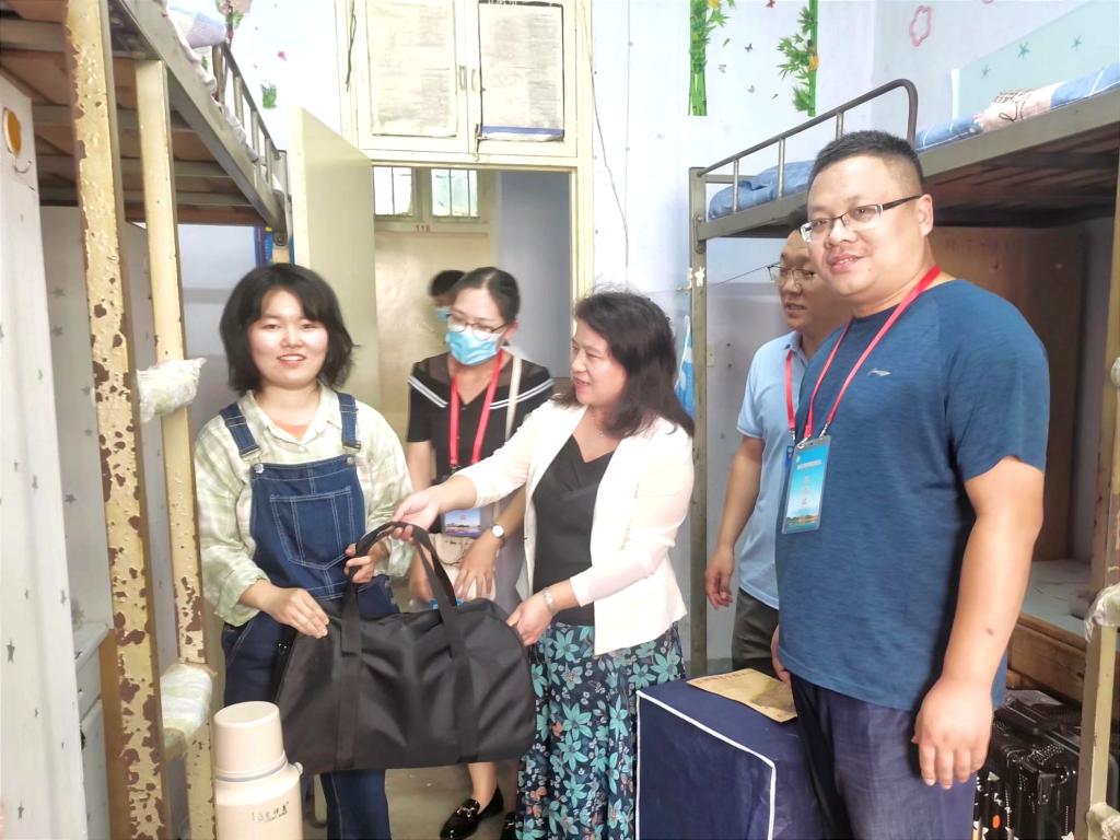 9月27日,600cc全讯白菜自助注册党委书记宋力,党委副书记朱明,团委老师杨辉、姚玉坤、曹鹏鹏一同前往新生宿舍慰问,并送上爱心助学大礼包。