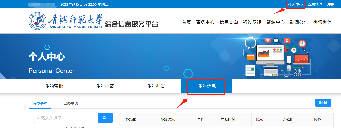 1.登陆综合信息服务平台(http://one.qhnu.edu.cn)