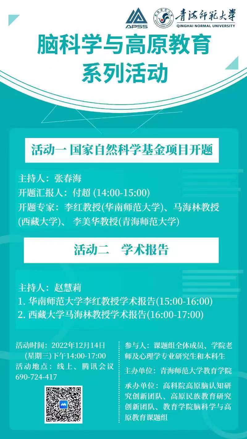 承办单位:高科院高原脑认知研究创新团队、高原民族教育研究创新团队、教育学院脑科学与高原教育课题组
