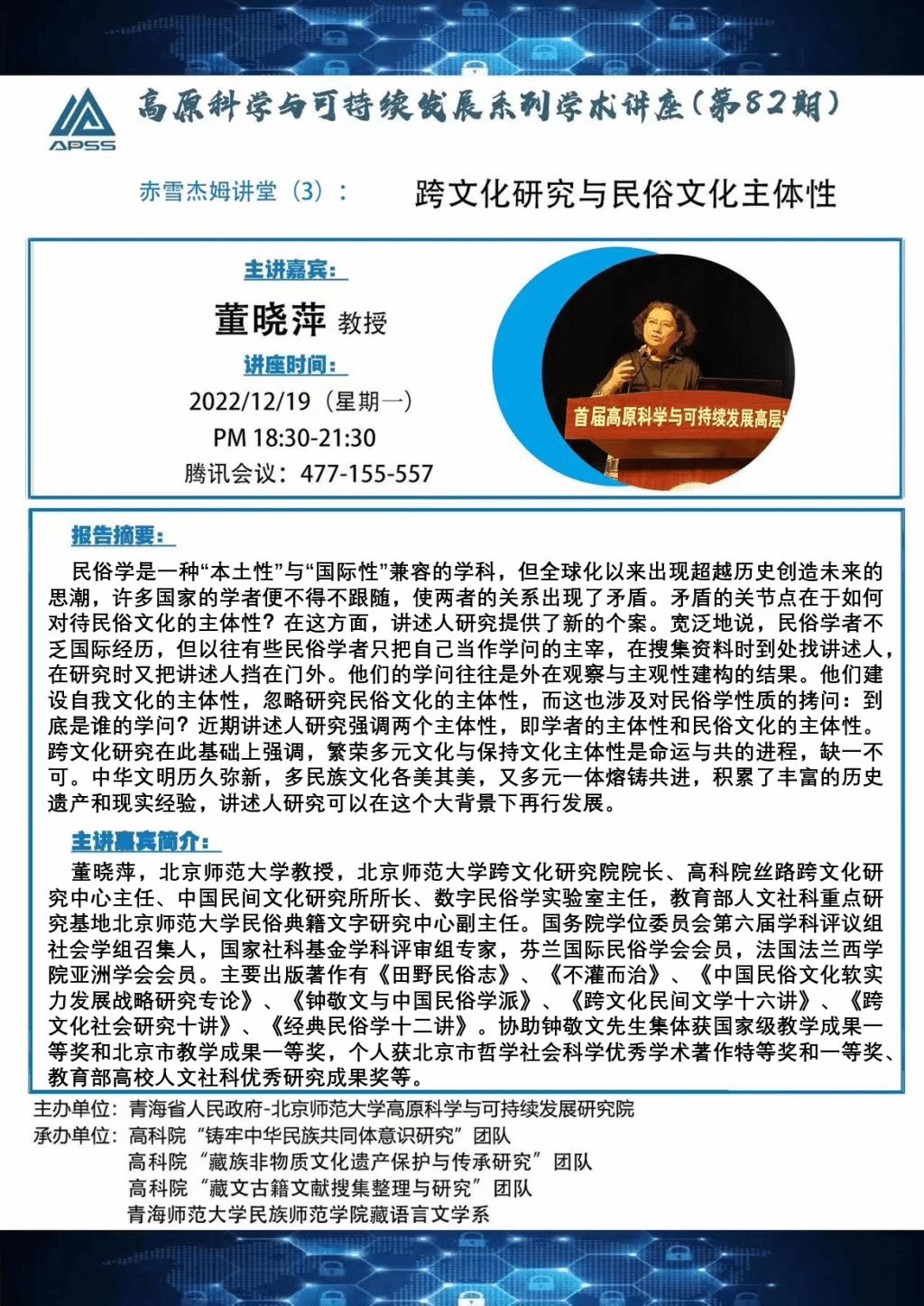为进一步增进校内外学术交流,拓展ac米兰师生学术研究视野,促进ac米兰科研创新氛围,高科院定于2022年12月19日(星期一)在线举办第82期高原科学与可持续发展系列学术讲座,欢迎届时参加交流。