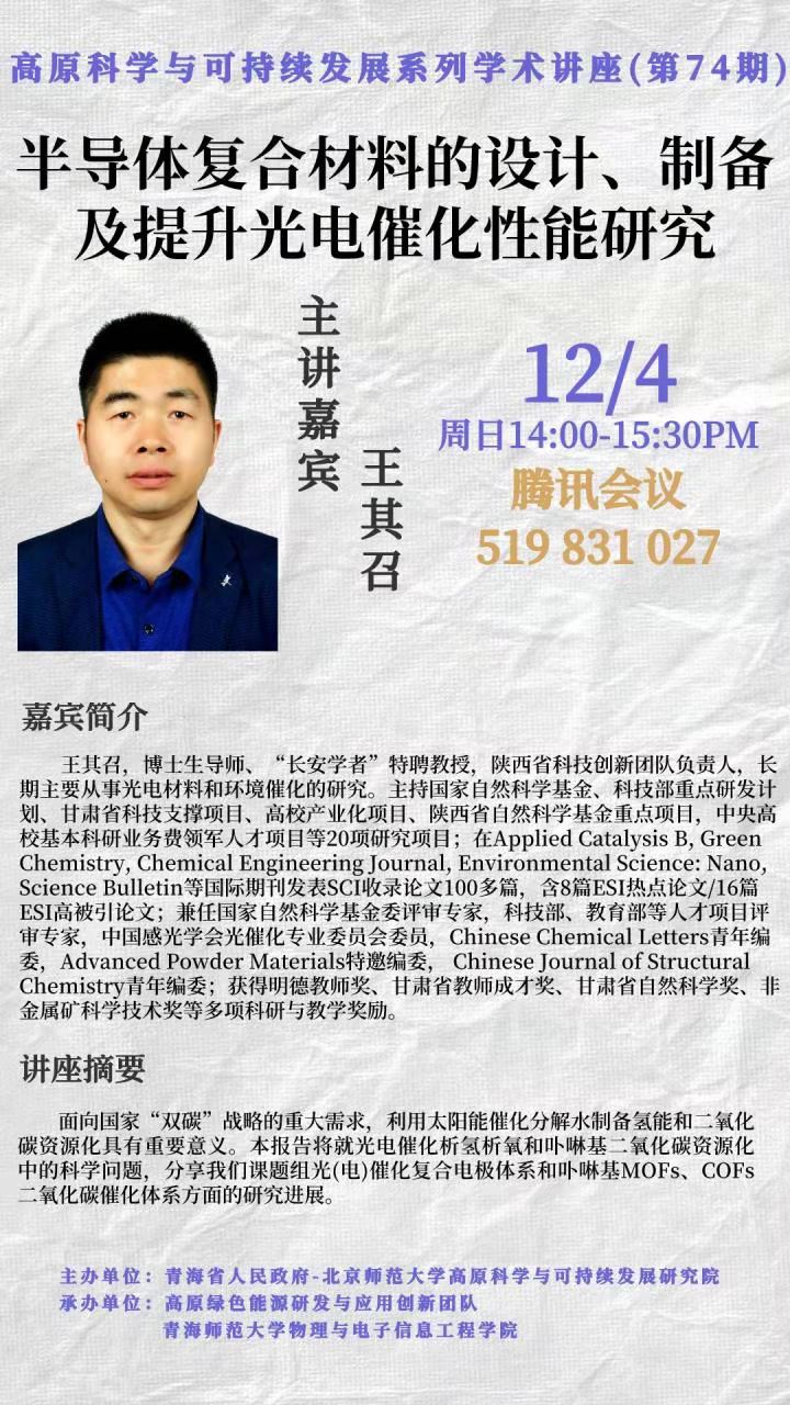为进一步增进校内外学术交流,拓展校内师生学术研究视野,促进学校科研创新氛围,我院定于2022年12月4日(星期日)在线举办第72-75期高原科学与可持续发展系列学术讲座,欢迎届时参加交流。
